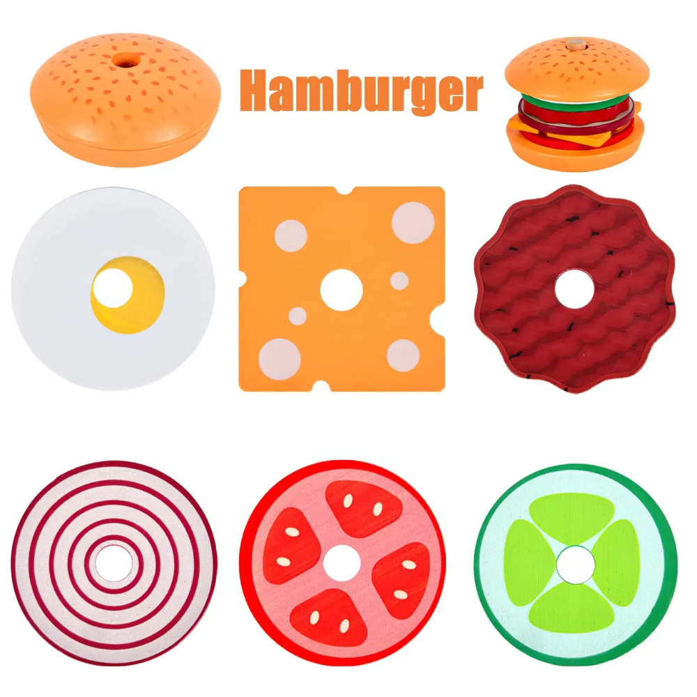 - 1x Brinquedo Educativo de Madeira Montessori – Sanduíche de Empilhar com Cartas de Comida para Crianças